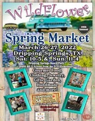 Come shop with us and many fantastic vendors at the 10th annual Wildflower Spring Market coming to Dripping Springs Ranch Park & Event Center (1042 Event Center Drive). Vendors from around the state will be selling the best and clothing, jewelry, home decor, garden gifts, Texas handmade, accessories, gifts for the guys, art, photography, candles, yard art, soaps, and so much more.